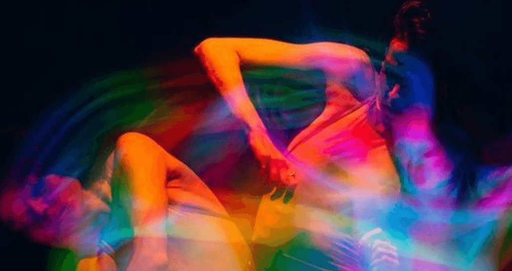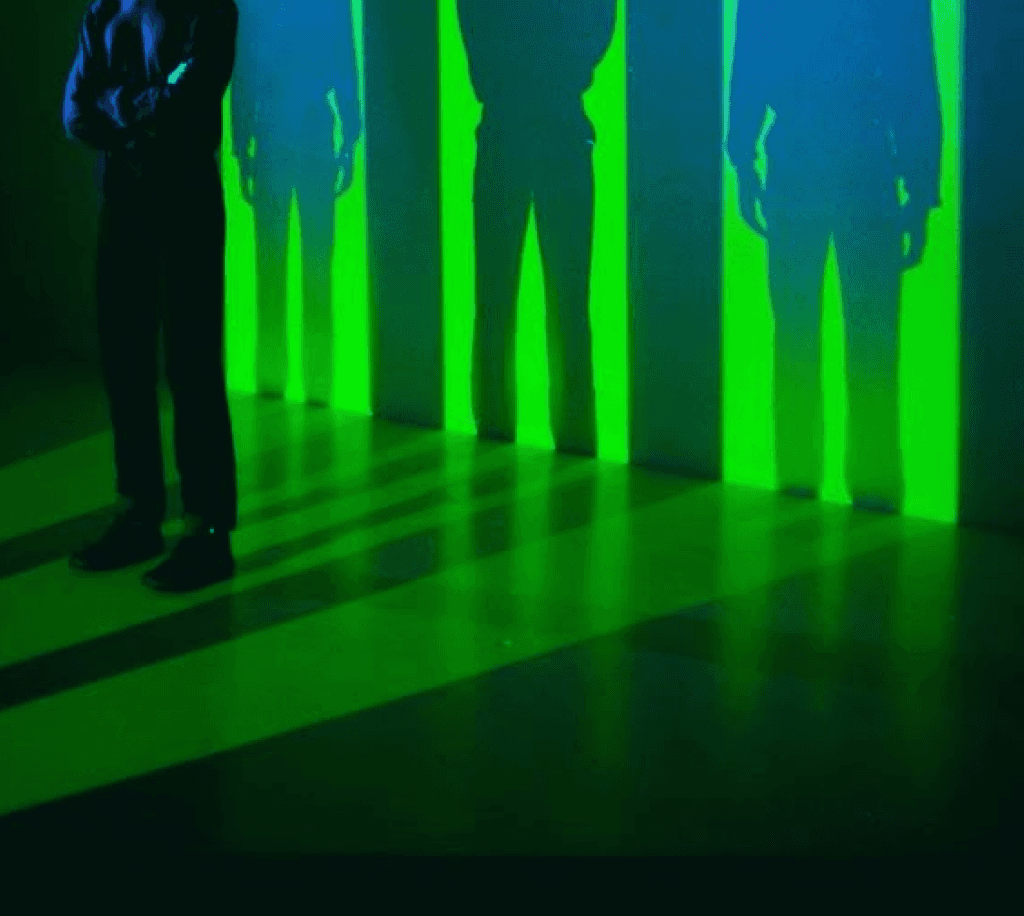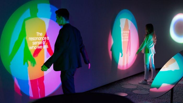 The visuals are abstract forms that pulse rhythmically, creating an immersive experience without looking artificial or like a screen.