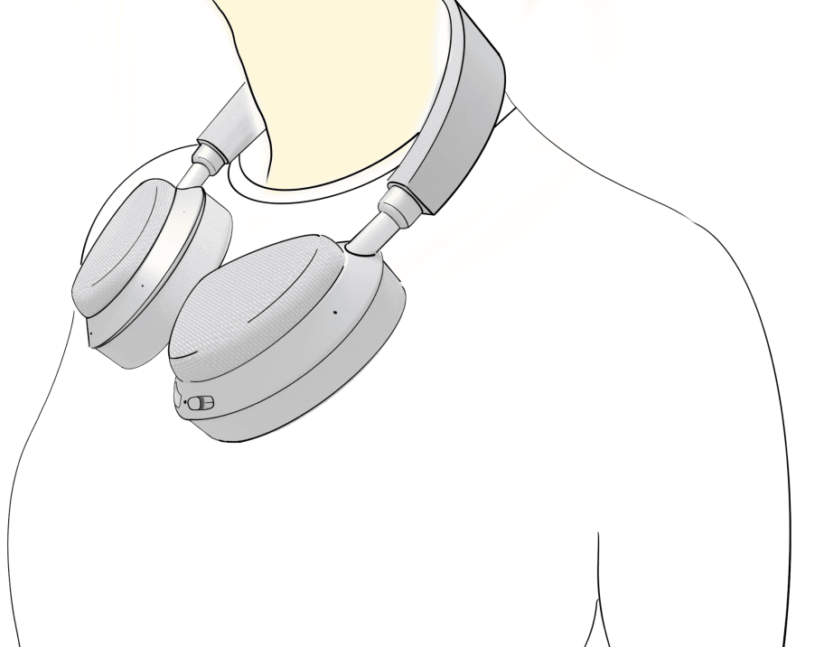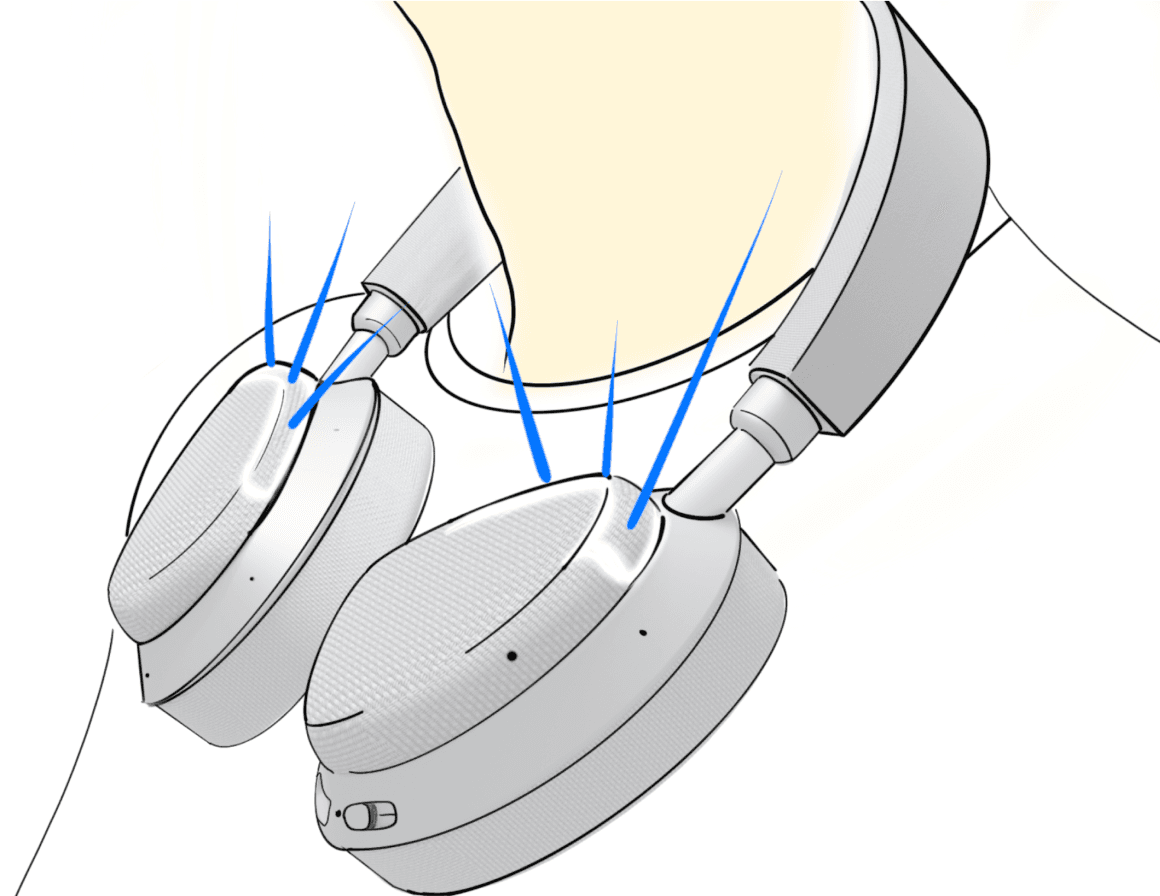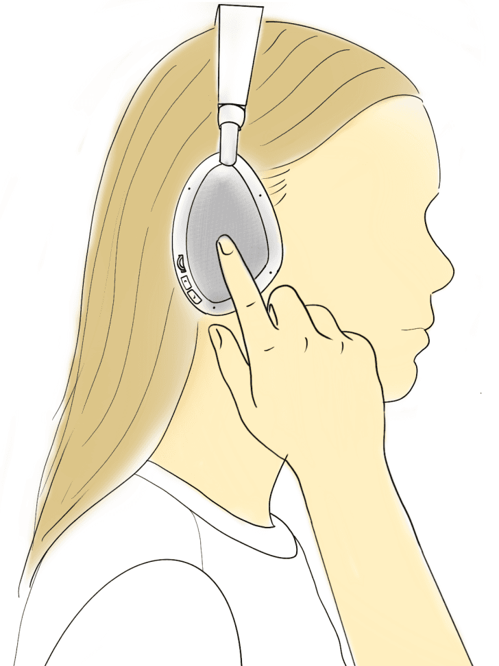 Hazal long- pressed the mesh to turn on the Auri headphones.